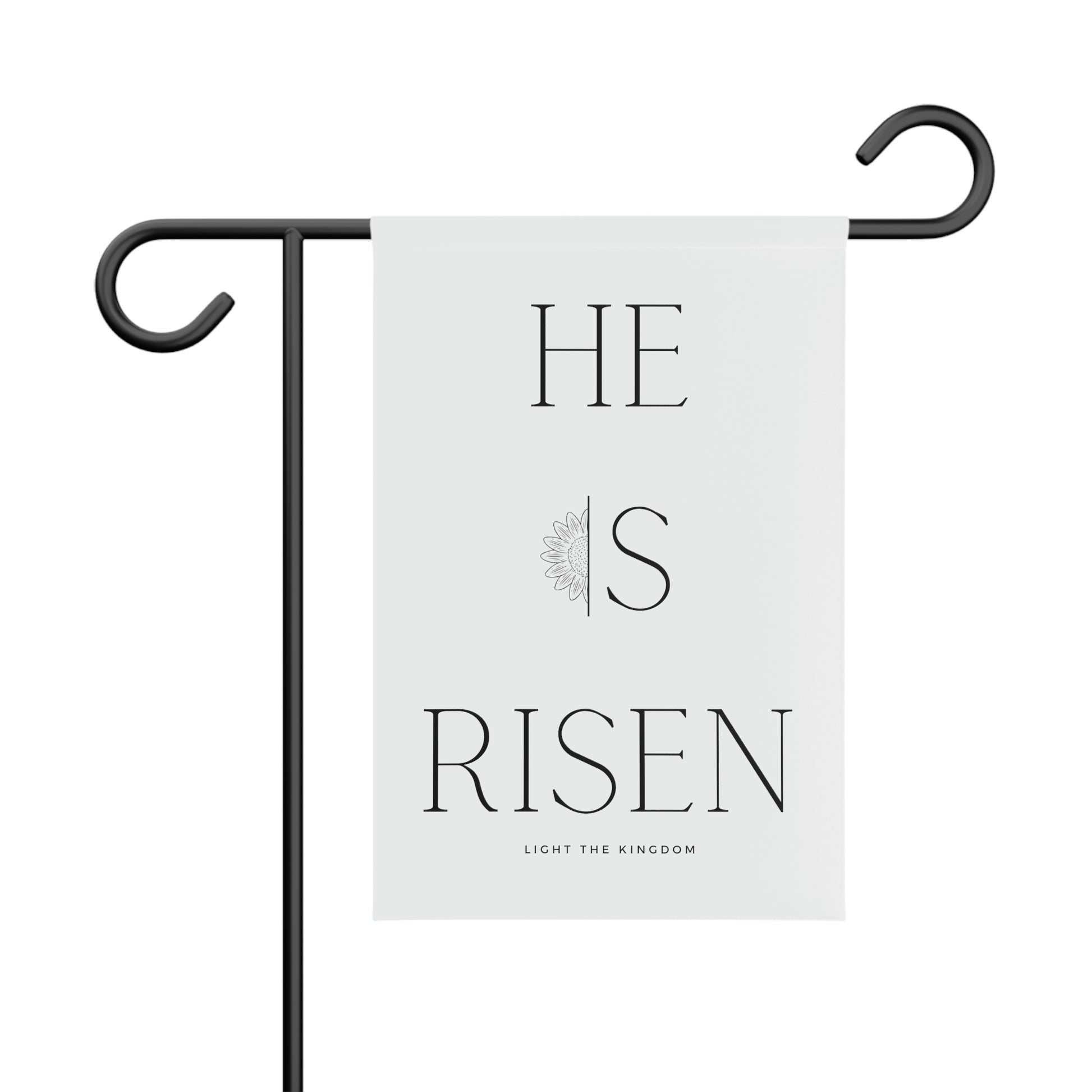 Celebrate that He Is Risen with this beautiful garden flag, add it to your garden or any outdoor space or corner of your home! Made with 100% polyester, PU and carbon black, these blank banners are fade-resistant making them an excellent, weather-proof choice for prolonged use under the summer sun. Your art is printed on both sides in vivid detail and each banner features a sleeve that fits standard flagpoles or stands (pole/stakes not included; flag only).
