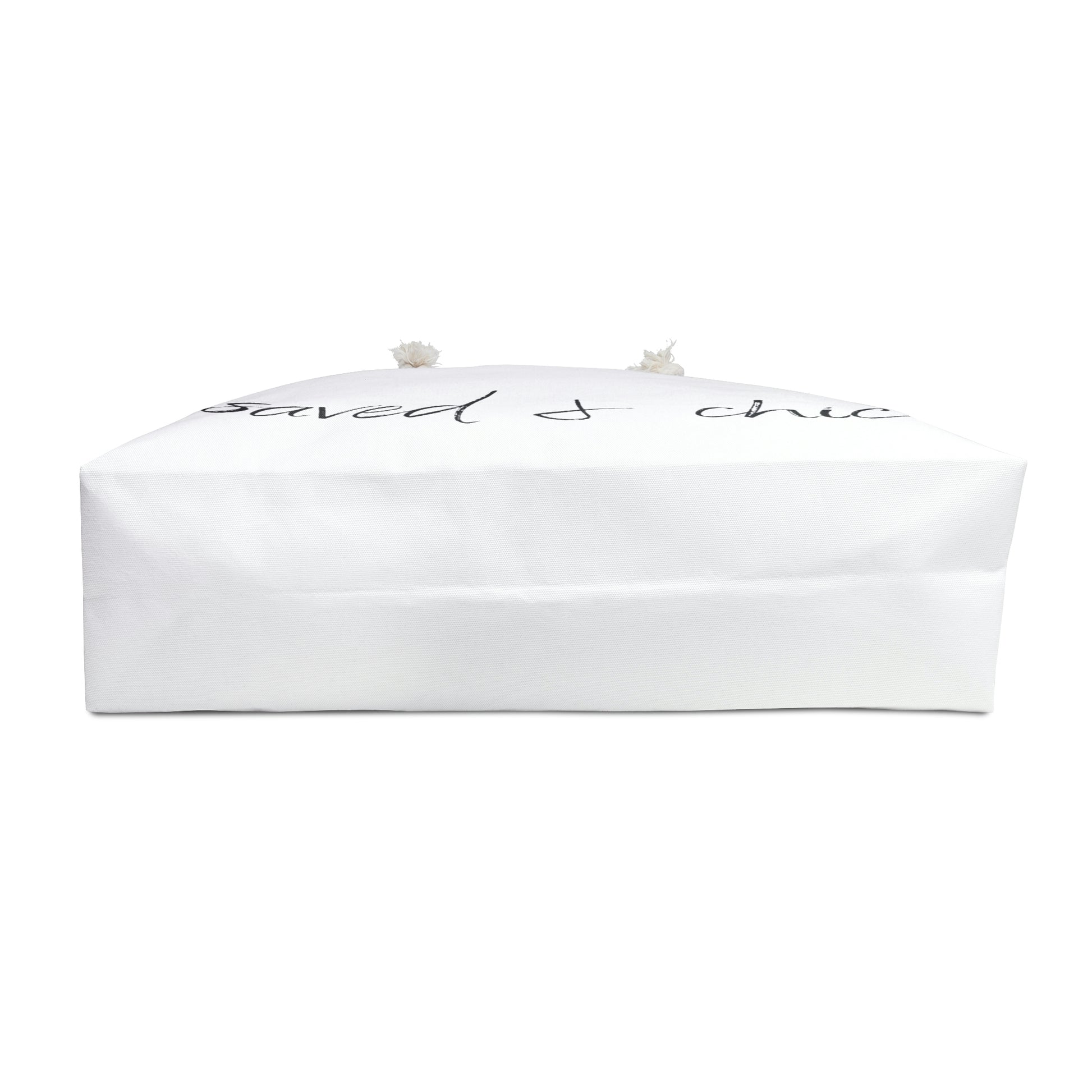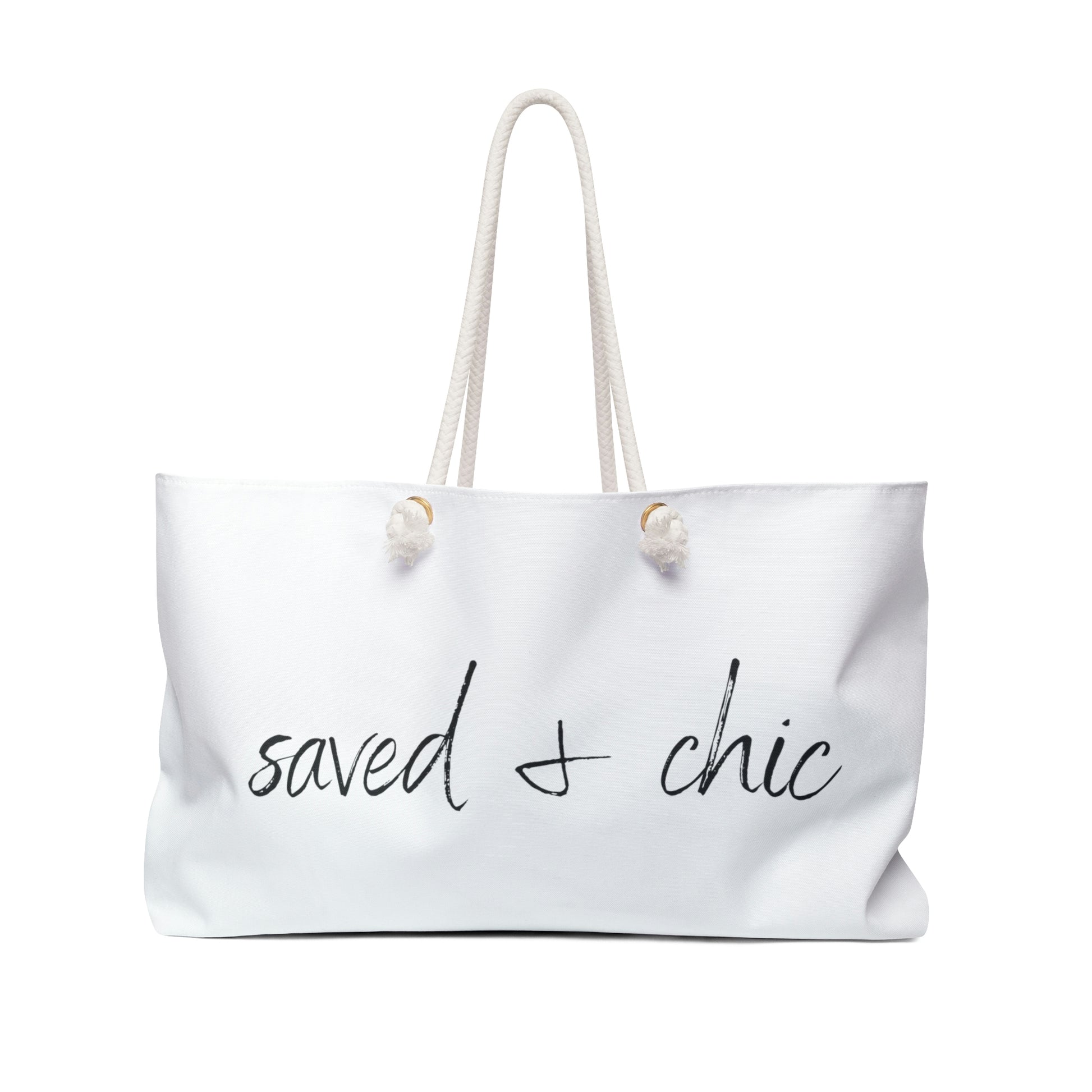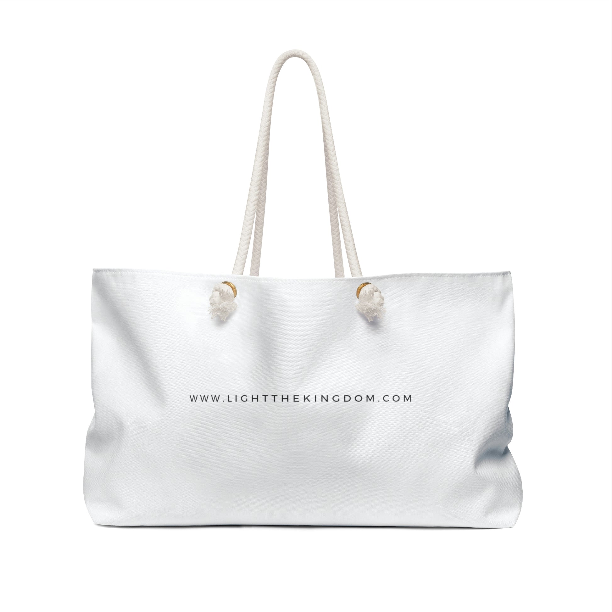 Step out in confidence with your "saved & chic" oversized Weekender Tote, perfect for your weekend at the beach or in town! "Light the Kingdom" was born out of our desire to serve and spread the good news of the Kingdom of God. Rep the brand and share His word everywhere you take your weekender tote. The wide-mouthed, durable bag holds a generous amount of personal items and is easily held by its thick rope handles.