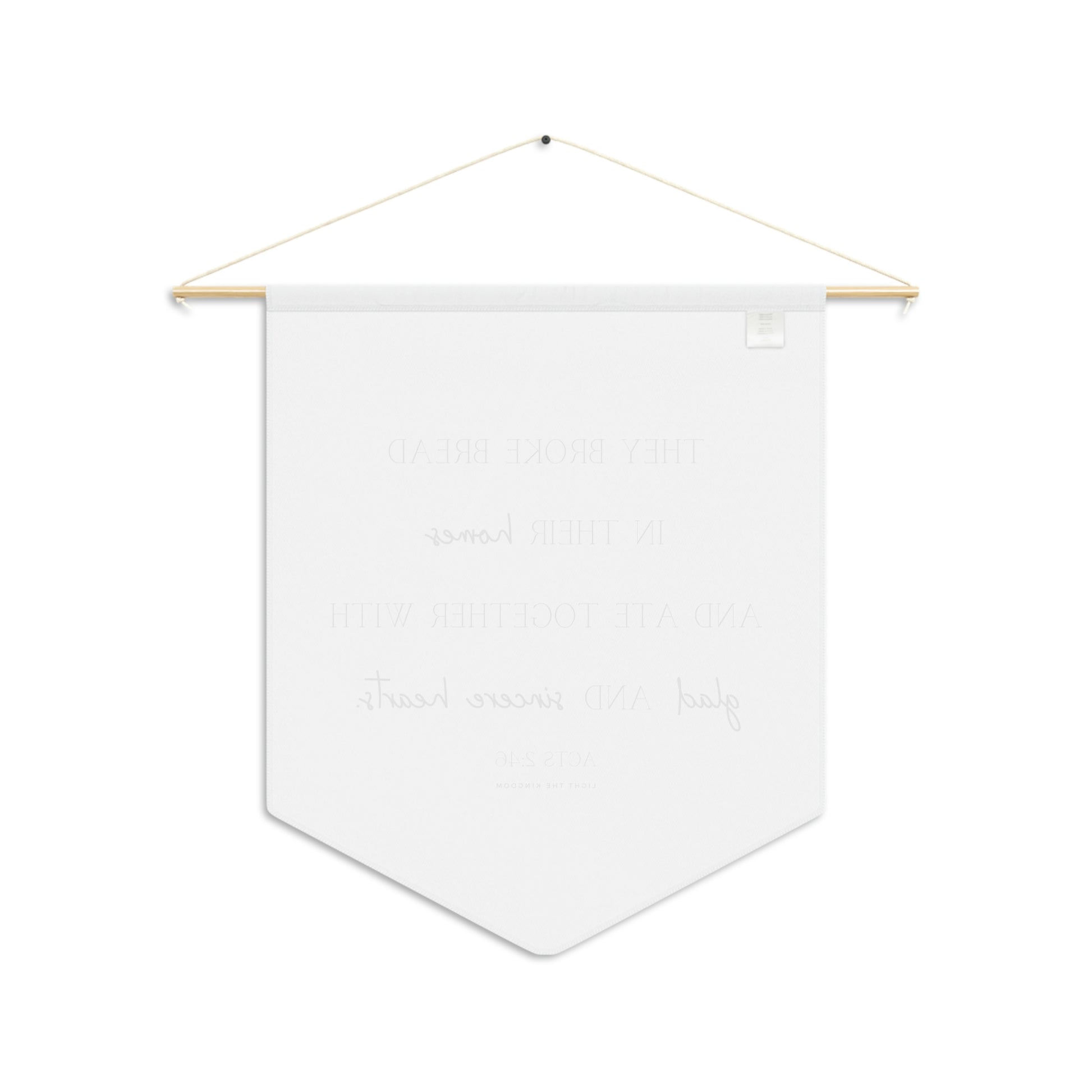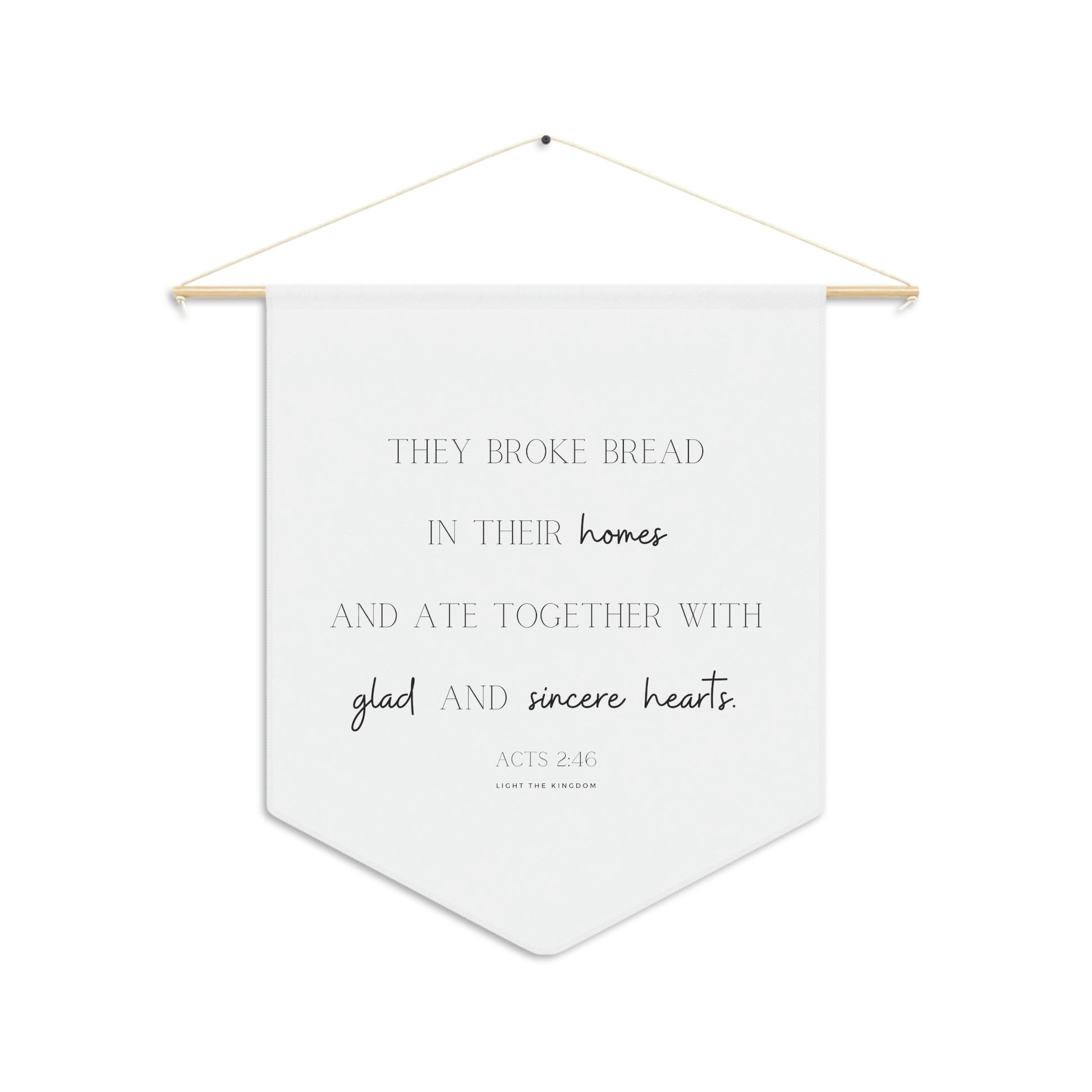 Adorn your space with the They Broke Bread scripture hanging wall pennant. They're lightweight and highly durable for decor that looks clean, minimal and stunning! Each pennant wall hanging comes with a wooden dowel for easy hanging.