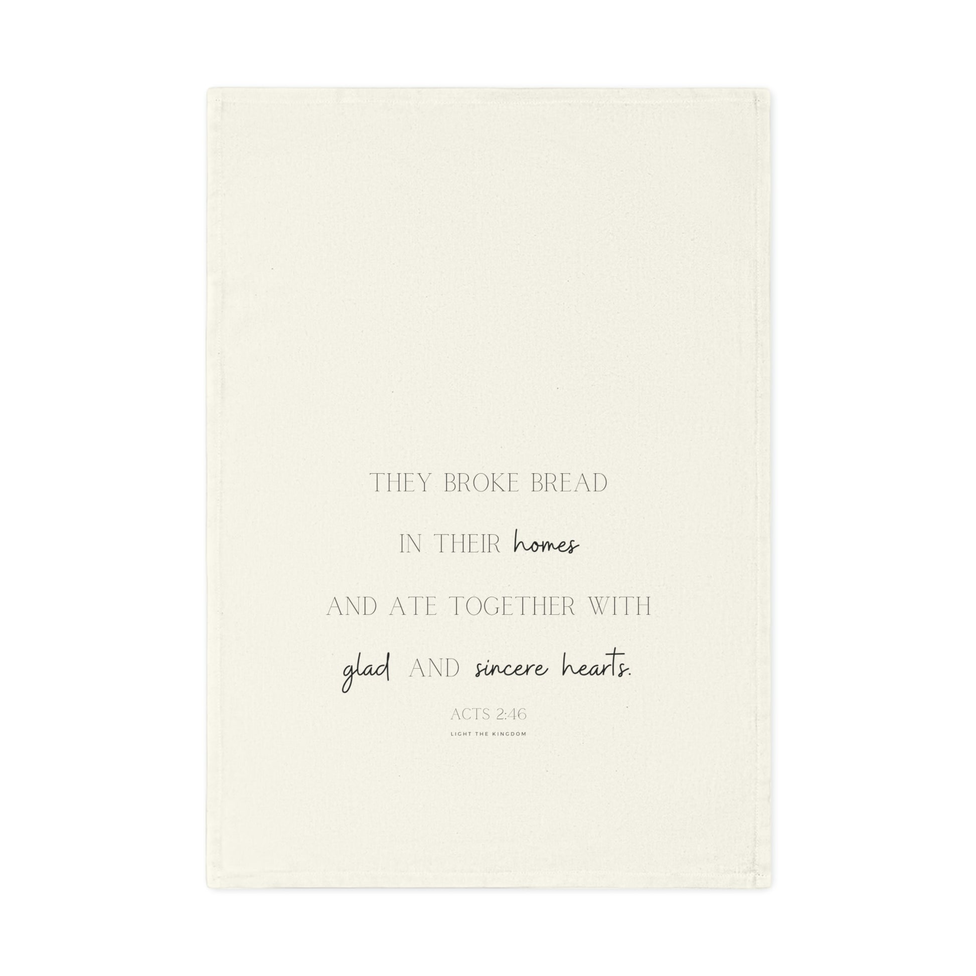 Add a personalized, biblical touch to your kitchen and display the "They Broke Bread" scripture tea towel. This is the perfect Christian housewarming gift to light up the home and welcome friends and family! Each of our personalized hand towels is ethically made 100% from controlled, organically cultivated cotton for incredible softness that feels good to use.